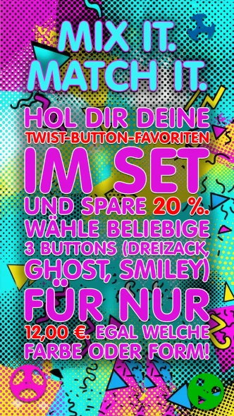 Schnapp dir 3 (oder mehr) Twist Buttons – dann kostet jeder Button nur noch schlanke 4 €.
